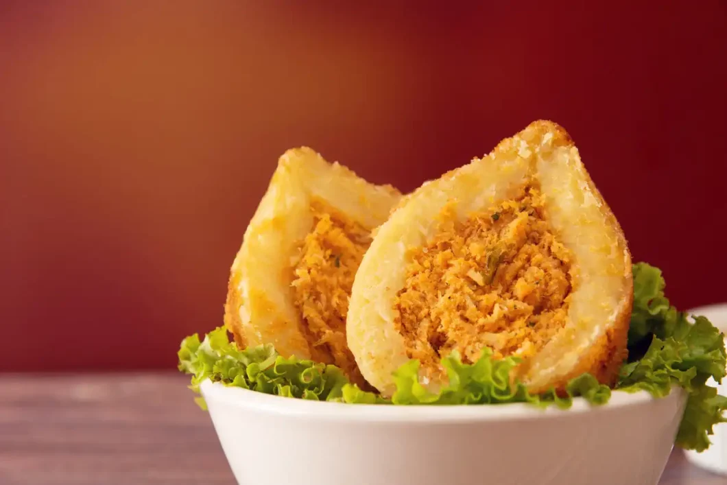 Form the Coxinhas: Once the dough is cool enough to handle, take a small portion and flatten it into a round shape with your hands. Place a spoonful of the chicken filling in the center of the dough. Mold the dough around the filling, pinching at the top to seal and form a teardrop shape. Repeat with the remaining dough and filling.